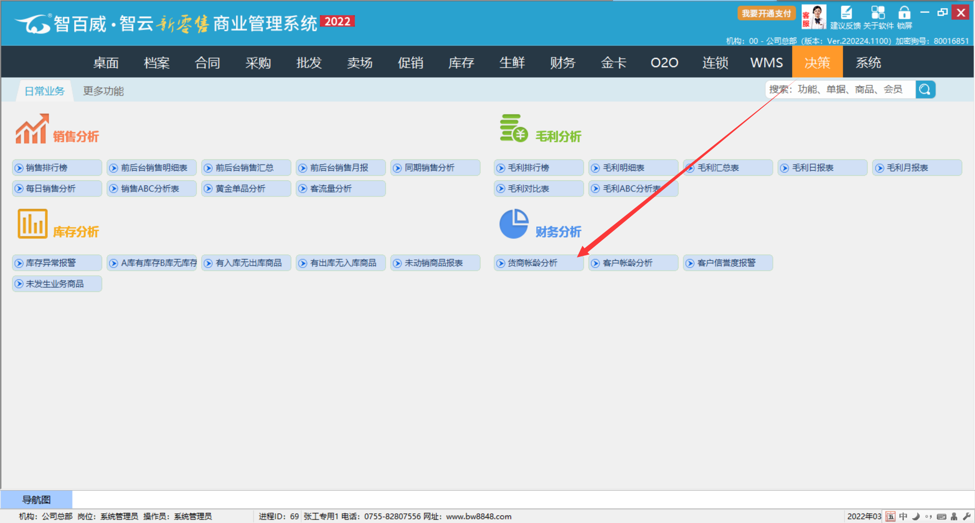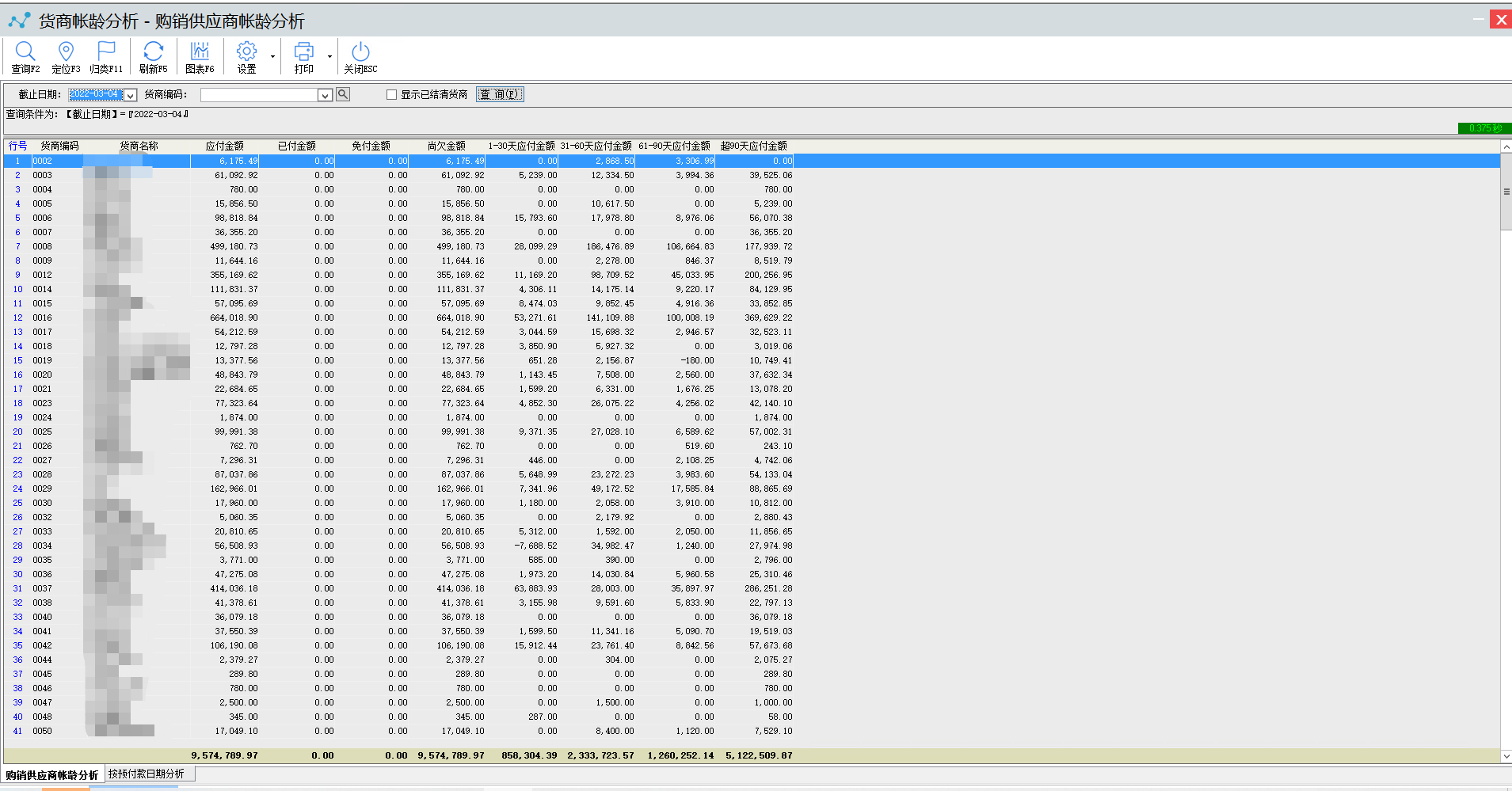 報(bào)表查詢(xún)路徑:決策--財(cái)務(wù)分析--貨商帳齡分析