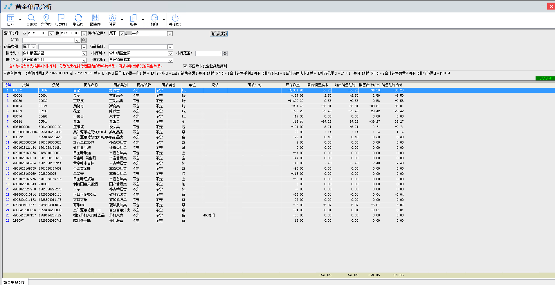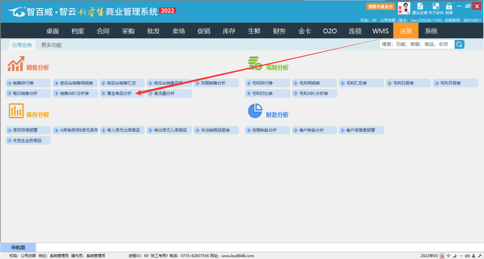 報(bào)表查詢(xún)路徑:決策--銷(xiāo)售分析--黃金單品分析