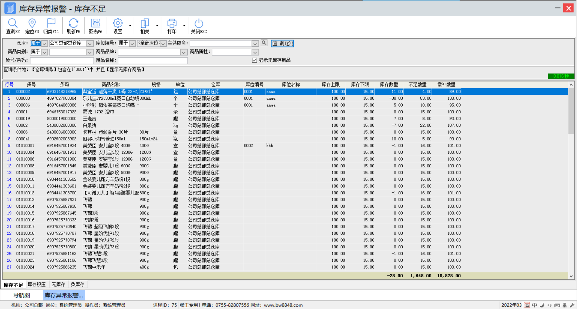 此報(bào)表是根據(jù)每個(gè)機(jī)構(gòu)設(shè)置的庫(kù)存上下限來(lái)顯示庫(kù)存足,庫(kù)存積壓,負(fù)庫(kù)存,無(wú)庫(kù)存。根據(jù)實(shí)際情況來(lái)做相應(yīng)的業(yè)務(wù)。