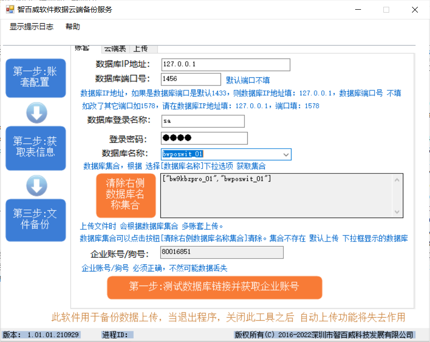 注意:此工具可以同時備份多個帳套,如果服務器上安裝了多個版本的軟件,可以同時備份。如下圖所示,V6商業(yè)和智云新零售。