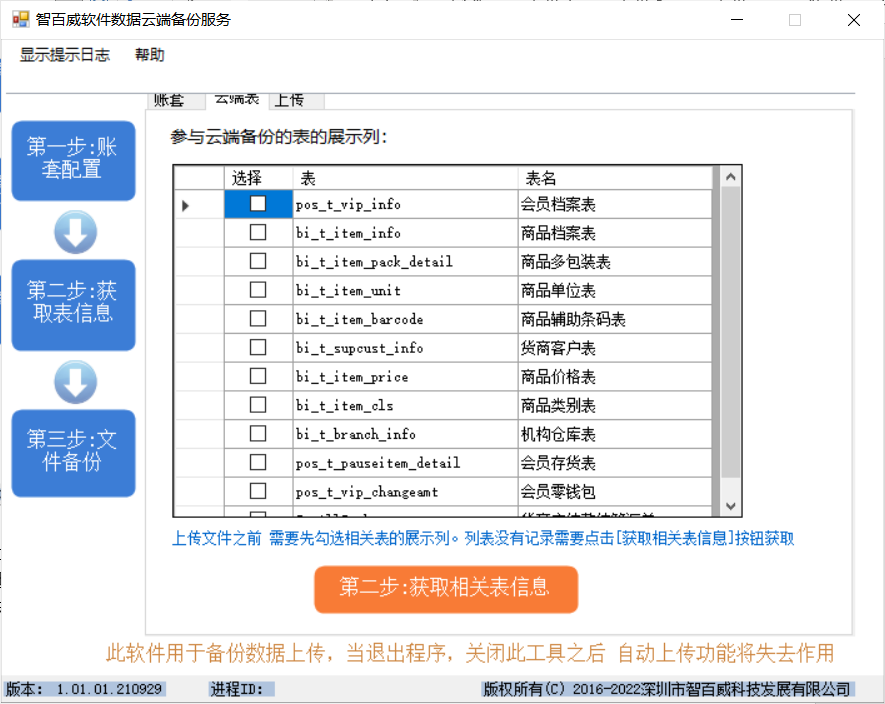 選擇要備份的數(shù)據(jù):在云端表里勾遠上要備份的數(shù)據(jù)