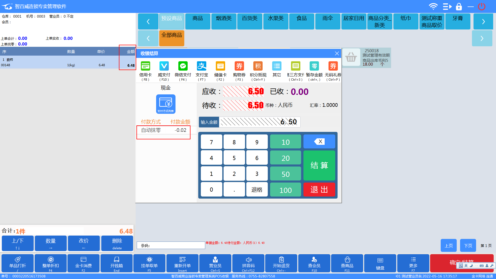 設(shè)置不抹零后的前臺(tái)結(jié)算效果 ?