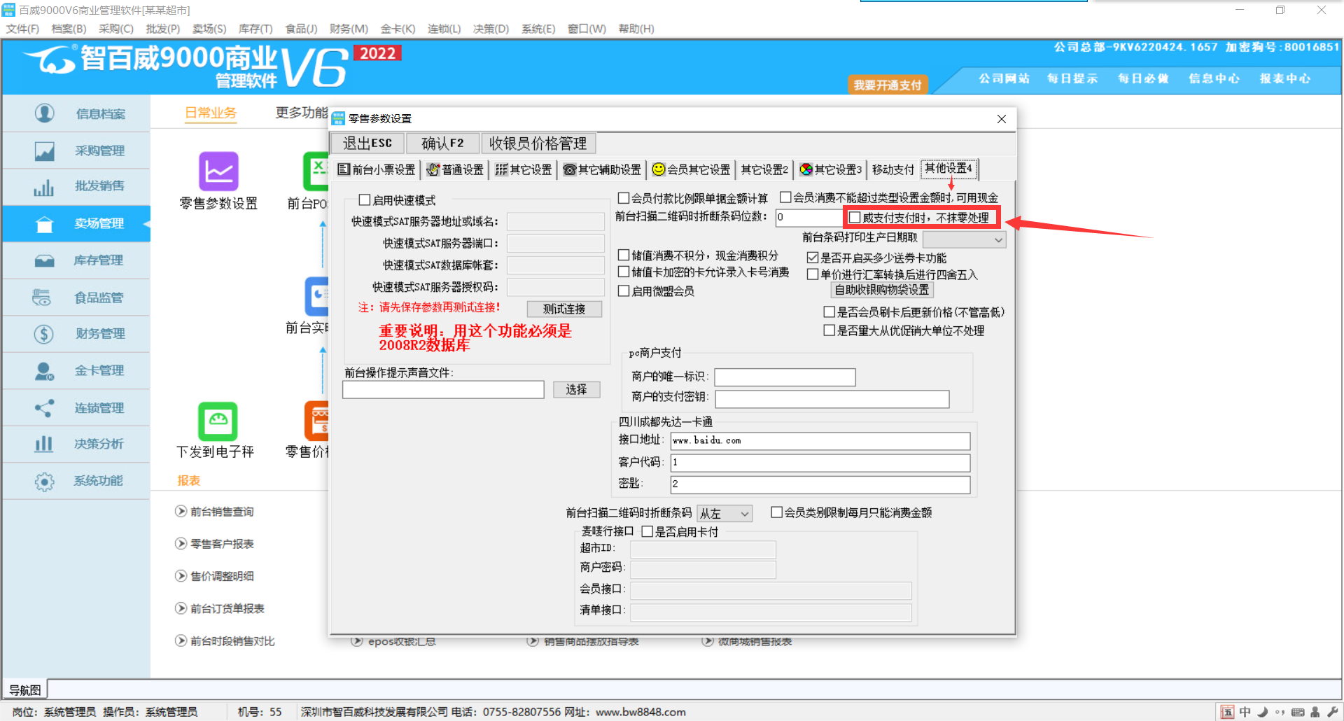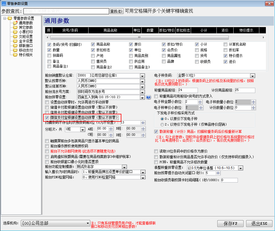 參數(shù)開啟:零售參數(shù)設(shè)置--其它設(shè)置--威支付支付時(shí),不抹零處理”里開啟/關(guān)閉此控制權(quán)限。