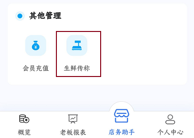 生鮮傳秤功能位于店賬通Pro小程序中的店務(wù)助手模塊中的其他管理模塊內(nèi)