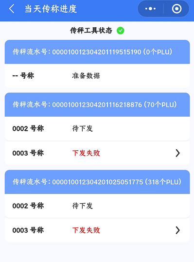 傳秤工具工具狀態(tài)為綠色標(biāo)識(shí)時(shí)代表在線,可以下發(fā)商品