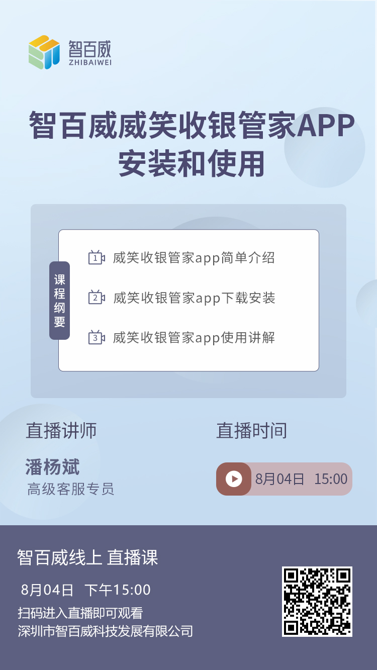 學(xué)會(huì)使用智百威威笑收銀管家APP,您就能方便快捷收銀、讓店務(wù)管理變得簡(jiǎn)單、門店數(shù)據(jù)實(shí)時(shí)掌握。所以,咱們8月4日下午3點(diǎn),在直播間見(jiàn),一起來(lái)學(xué)習(xí)哦